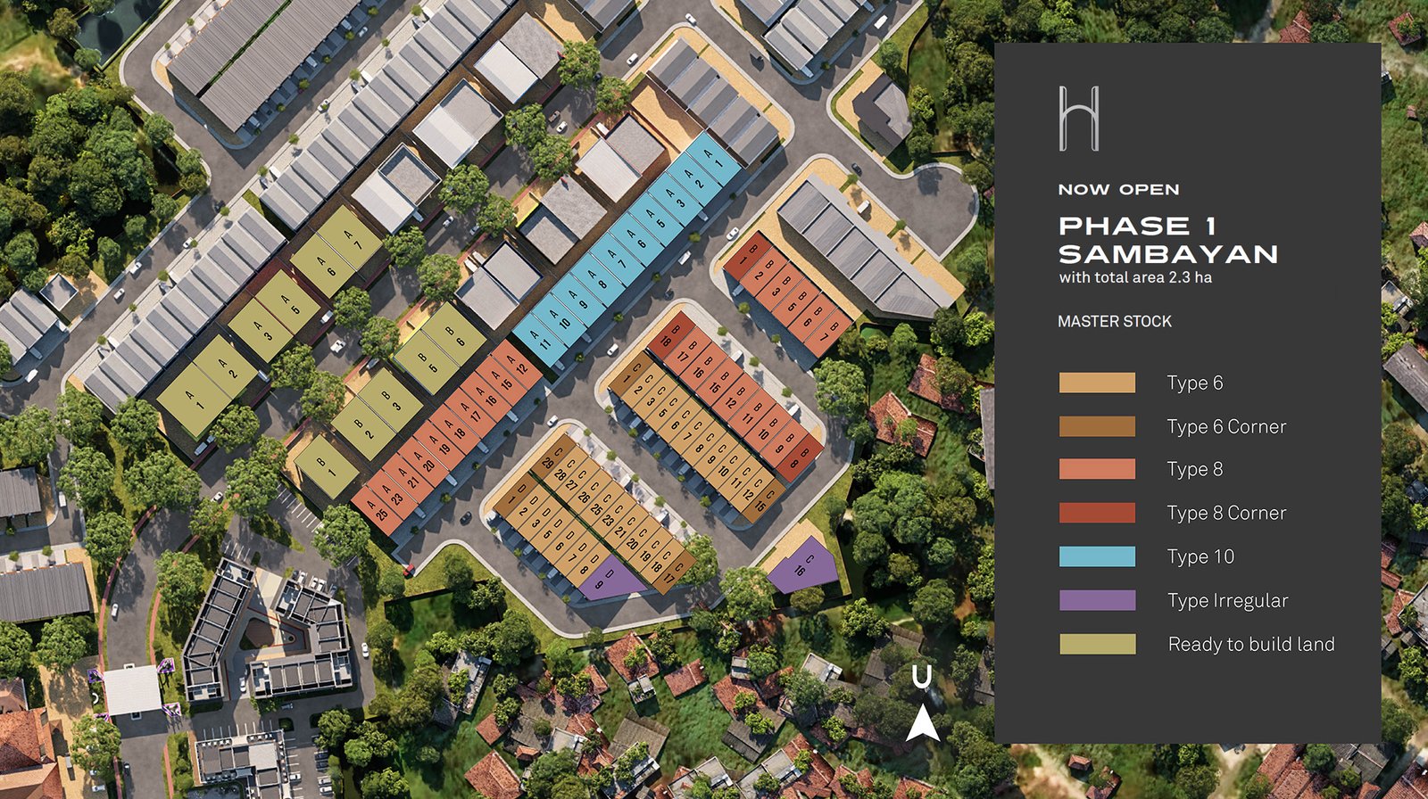 Holdwell’s total area encompasses a spacious number of 12.5 ha wide. This area includes office and residential area, green open space area, and commercial area.